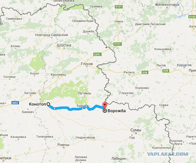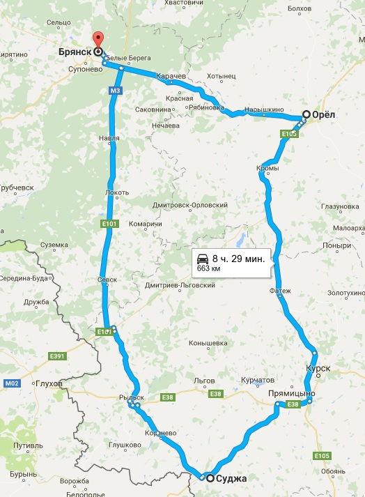 Расстояние рыльск суджа по трассе