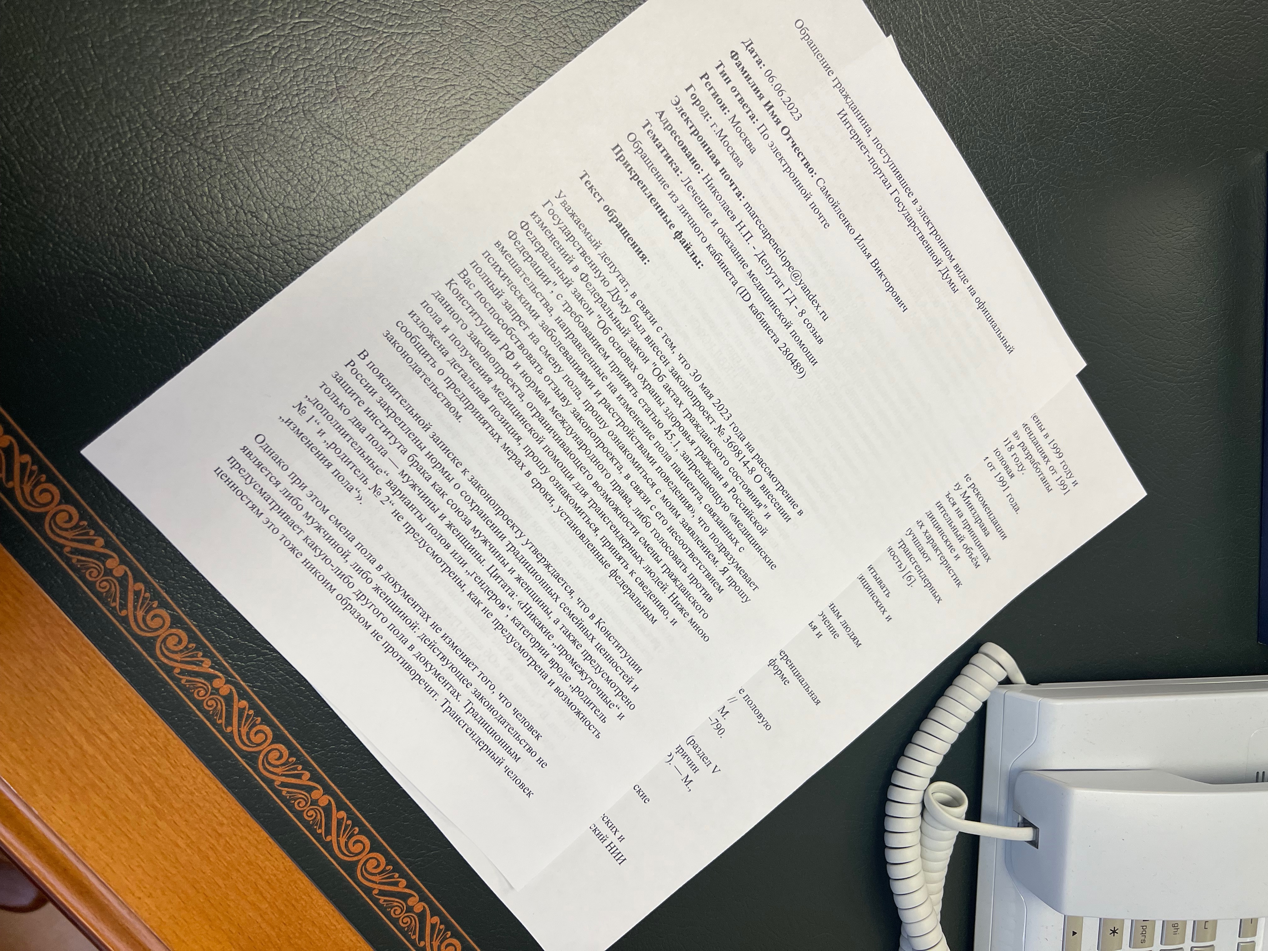 2. «Согласно МКБ-10 — транссексуализм относится к психическим расстройствам. Единственным лечением транссексуализма считаются, в т.ч. и в Российской Федерации, гормональная терапия и хирургические операции, направленные на формирование у человека первичных и (или) вторичных половых признаков желаемого пола, а также смена пола в документах. Тем самым, данный законопроект нарушит Статью 41 Конституции РФ, гласящую, что «Каждый имеет право на охрану здоровья и медицинскую помощь»».