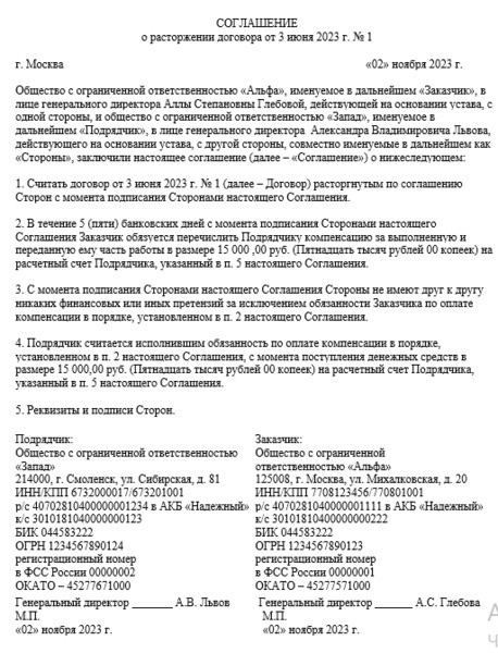 Расторжение договора подряда 715 120 фото