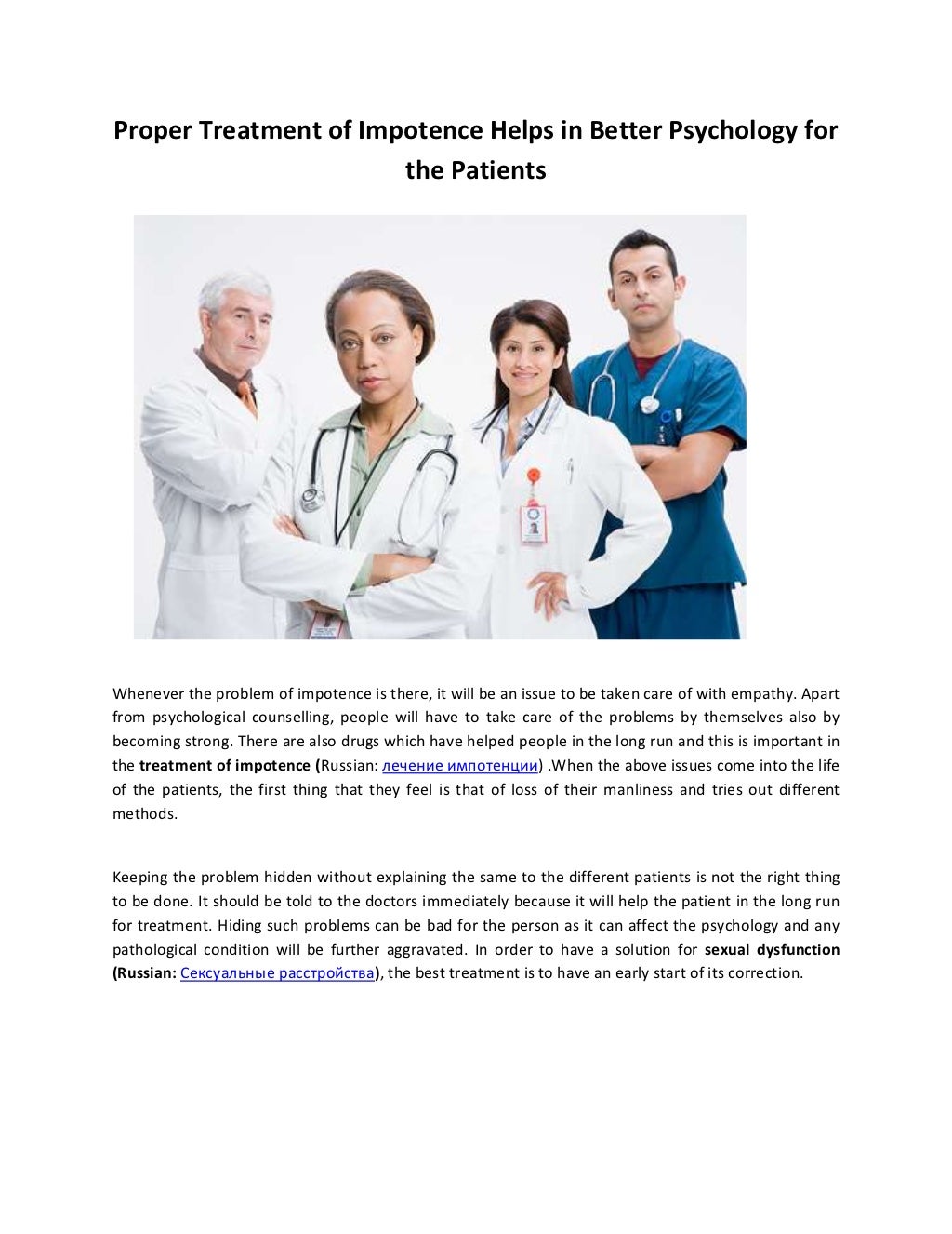 Вследствие того, что расстройства сексуального влечения зачастую связаны с психологической стороной жизни пациенток, необходимо устранение не только причинного фактора, но и изменение всего психологического стереотипа. На первом этапе терапии используют психотерапевтические приёмы, рекомендуют самостоятельно нормализовать отношения с партнером, создать благоприятную обстановку, применять стимулирующие половое влечение средства. На втором этапе предлагается помощь врача в реконструкции половых отношений с применением медикаментов (гормональных препаратов – производных тестостерона), физиотерапии (вибромассажа, локальной дозированной гипертермии), иглорефлексотерапии (стимуляции рефлексогенных зон). На третьем этапе проводят сексуальную реадаптацию партнеров с применением поддерживающей психотерапии (методами внушения), а также обучение пациентки методам релаксации. С нашим проектом сотрудничают одни из лучших специалистов по лечению данного заболевания. Свяжитесь с нами и мы организуем консультацию у андролога, сексолога высшей квалификационной категории, доктора медицинских наук Артифексова С. Б . и психиатра-психотерапевта, рекомендованного психотерапевта Московского института гештальт-терапии и консультирования Зелексона Б. А.