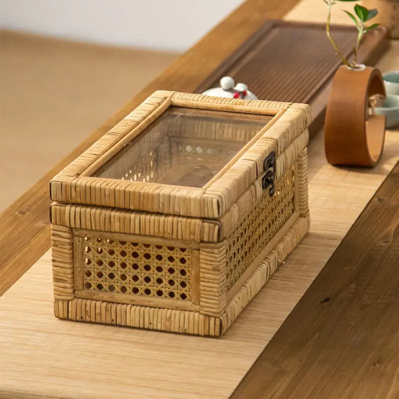 zBUCInzyHere you can buy Rattan Storage Boxes Household Organization Attachment Tea Cosmetics Sundry Snacks with Lid Box Dust Table Woven Storage Basket with free delivery to your post office.
