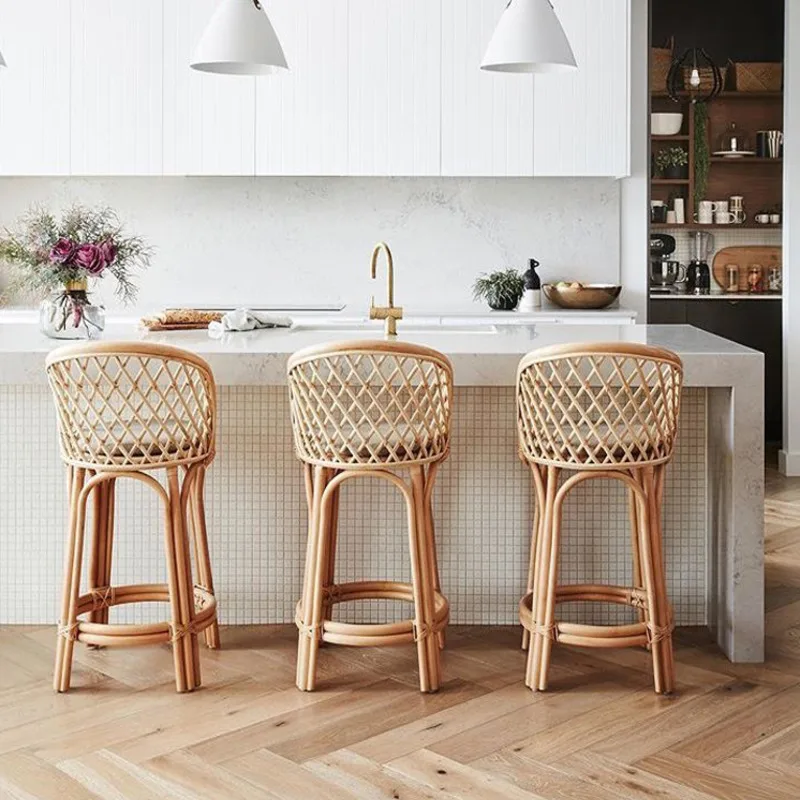 zmqRHJtDHere you can buy Rattan Woven High Stools Kitchen Simple Bar Chair Natural Real Rattan Back Dining Chair Retro Ins Restaurant Rattan Chair with free delivery to your post office.