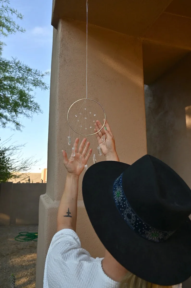 "Raw Crystal Suncatcher - Quartz Sun Catcher - Herkimer Diamond Quartz Dreamcatcher - Healing Quartz Gemstone - Boho Home Decor" * Buy Now Just For 29$