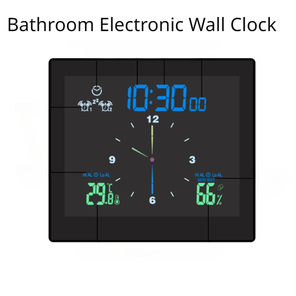 Raymeel-Bathroom Wall Clock with Suction Cup Electronic LED Digital Pointer Waterproof Kitchen Timer Temperature and Hygrometer - Купить с бесплатной доставкой