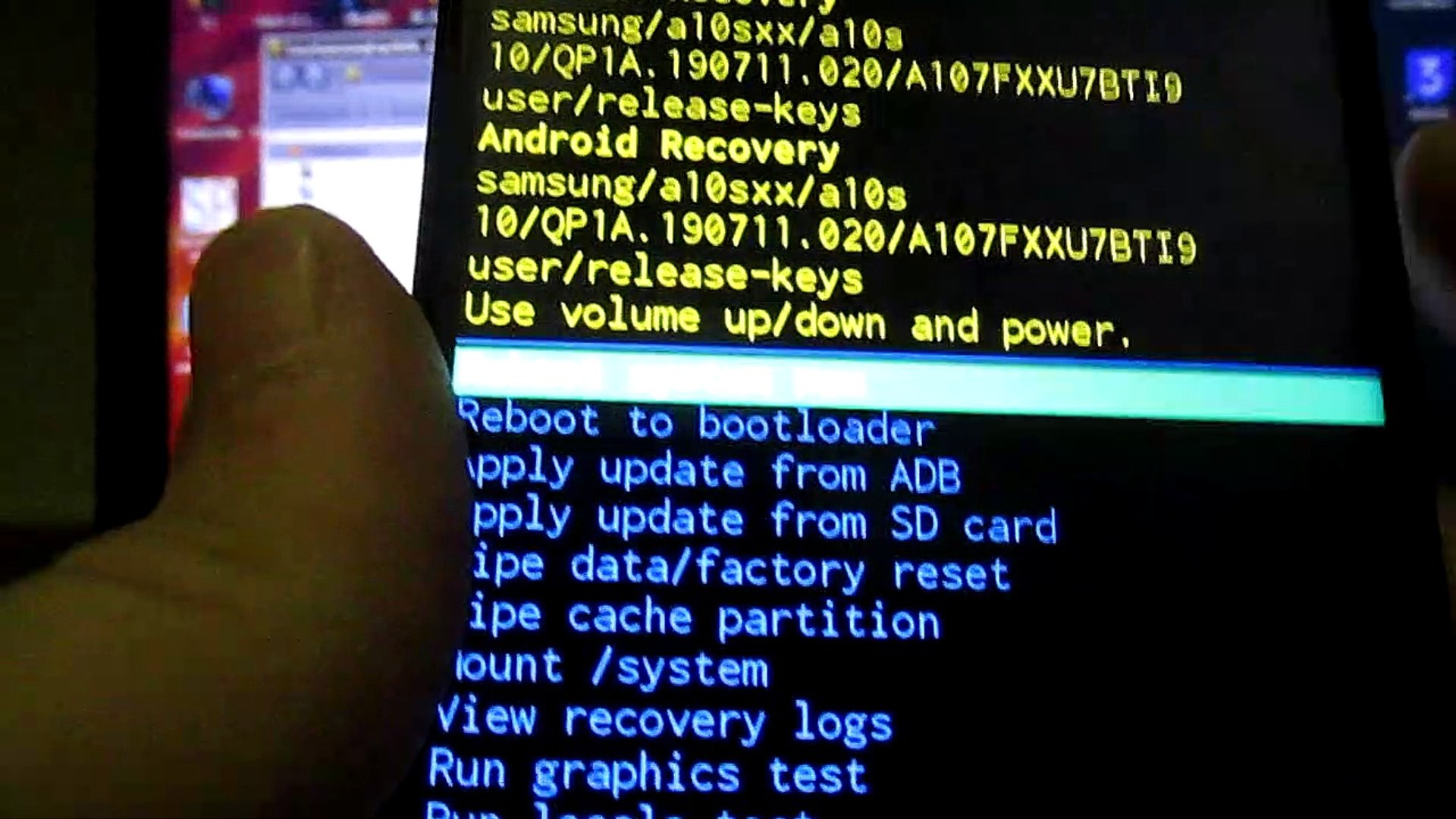 1 .Switch off your Huawei DRA-LX5 afta by pressing the Power button for a couple of seconds . 2 .Afterwards press and hold Power and Volume up button at the same time for few seconds . 3 .Release the power key when Huawei logo appears on the screen .As shown below: 4 .Use the volume up key to scroll to the first option recovery mode and select it . . .