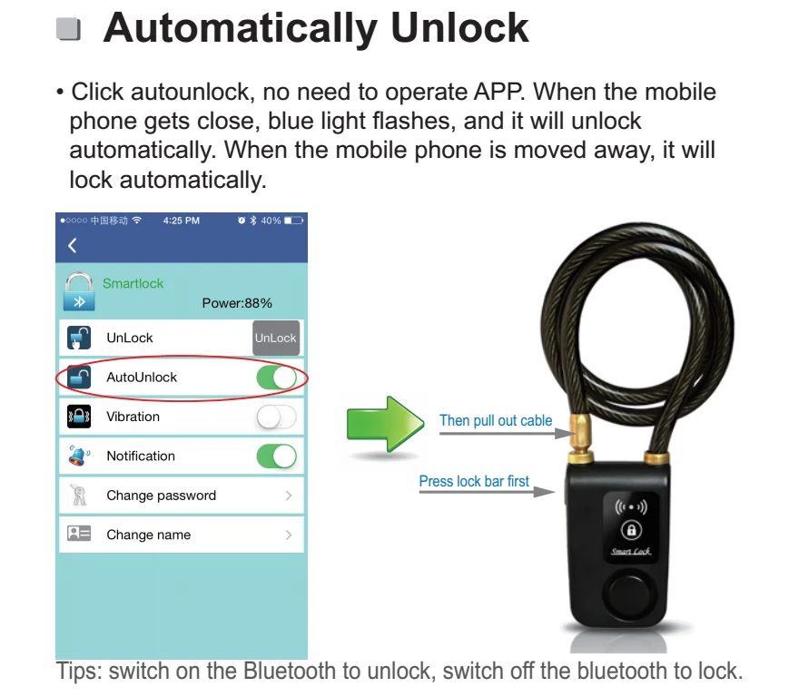 Разблокировка при поднятии