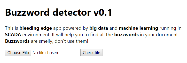 Тогда пробуем погуглить список buzzwords и находим таковой на википедии. Копируем кусок в документ и отправляем. В моем случае, их фильтр среагировал на слова "aglie" и "big data". Если фильтр что-то таки находит, то выводится некоторый кусок xml, и собственно это слово.