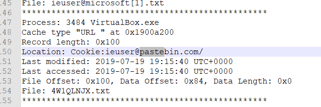 Кроме того, запуск iehistory почему-то показал, как человек ходил на pastebin.com из virtualbox.exe (не представляю, что творится в кишках virtualbox'а, если то, как он ходит в инет, отражается на реальной системе. Ну или это волатилити так отобразила кусок памяти, выделенной виртуалке.