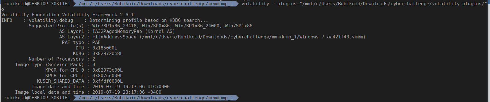 Распаковываем архив и натравливаем volatility. Проверяем imageinfo - это оказывается Win7SP1x86_23418.