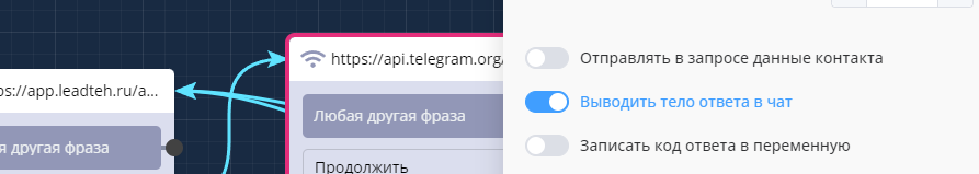 И финальная рекомендация! Для того, чтобы проверить, корректно ли отработал запрос - воспользуйтесь функцией "Выводить тело ответа в чат".