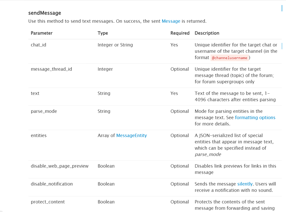 В целом этого достаточно для использования метода sendMessage при обращении к API Telegram. Но в рамках данного разбора, мы также познакомимся с параметром "reply_markup".