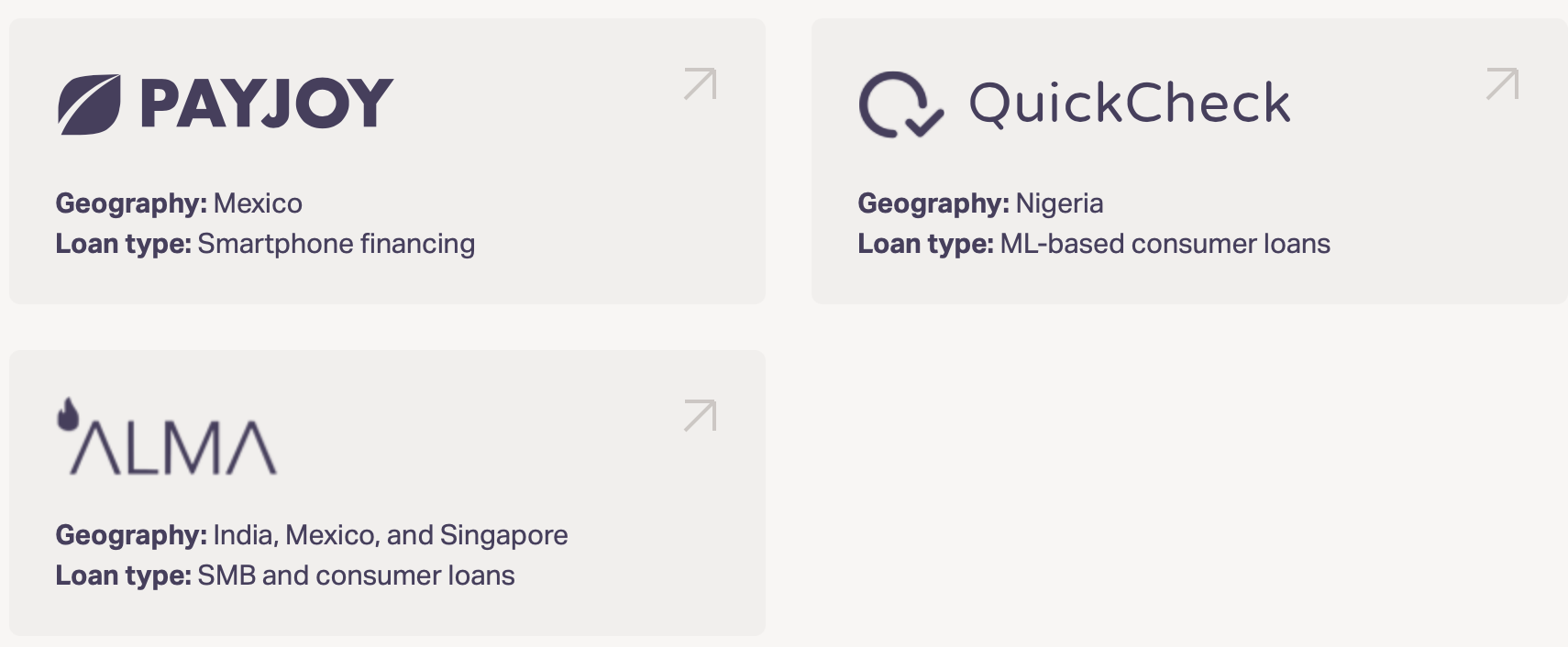 Например Goldfinch 15 сентября профинансировала компанию Oya на 4.9 миллиона $, Oya это компания микрокредитования в Гане, Танзании, Либерии и Уганде.