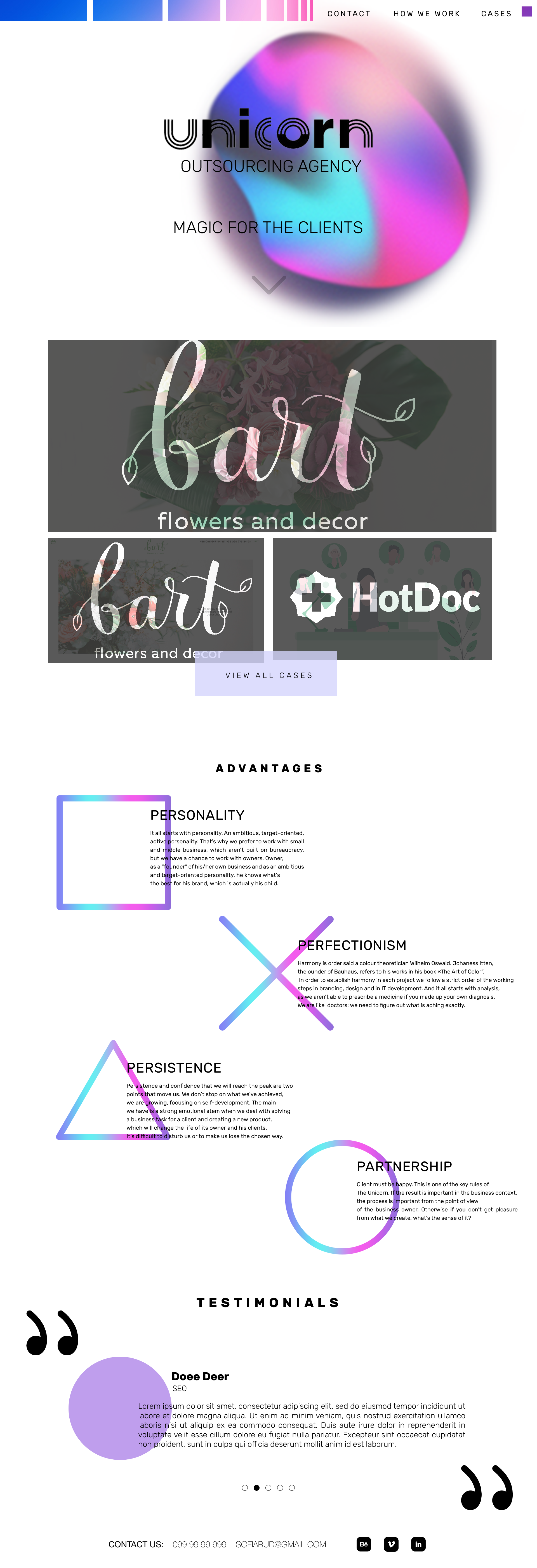 Таким образом мы экономим колоссальное количество пространства, позволяя пользователю меньше скроллить, а также мы увеличиваем количество информации, которое ему доступно сразу. Может и кнопка "VIEW ALL CASES" уже не нужна? В случае чего можно делать такую конструкцию многоуровневой (со вторым рядом и т.д.)