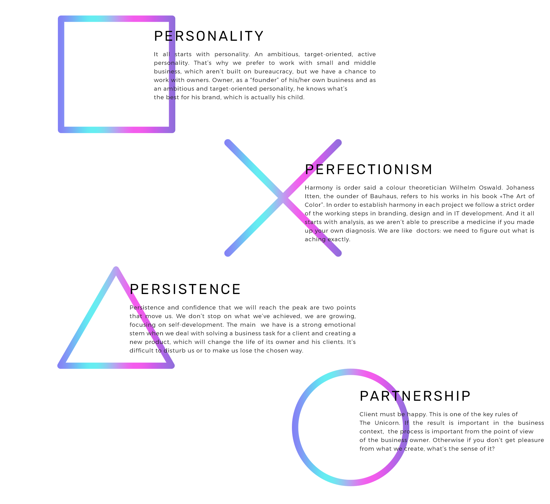 Я сменил гарнитуру основного текста на Montserrat (отличная пара для Rubik), сделал его на 85% непрозрачным, а также применил трекинг ко всем текстам на странице (120 для заголовков и 50 для основного текста).