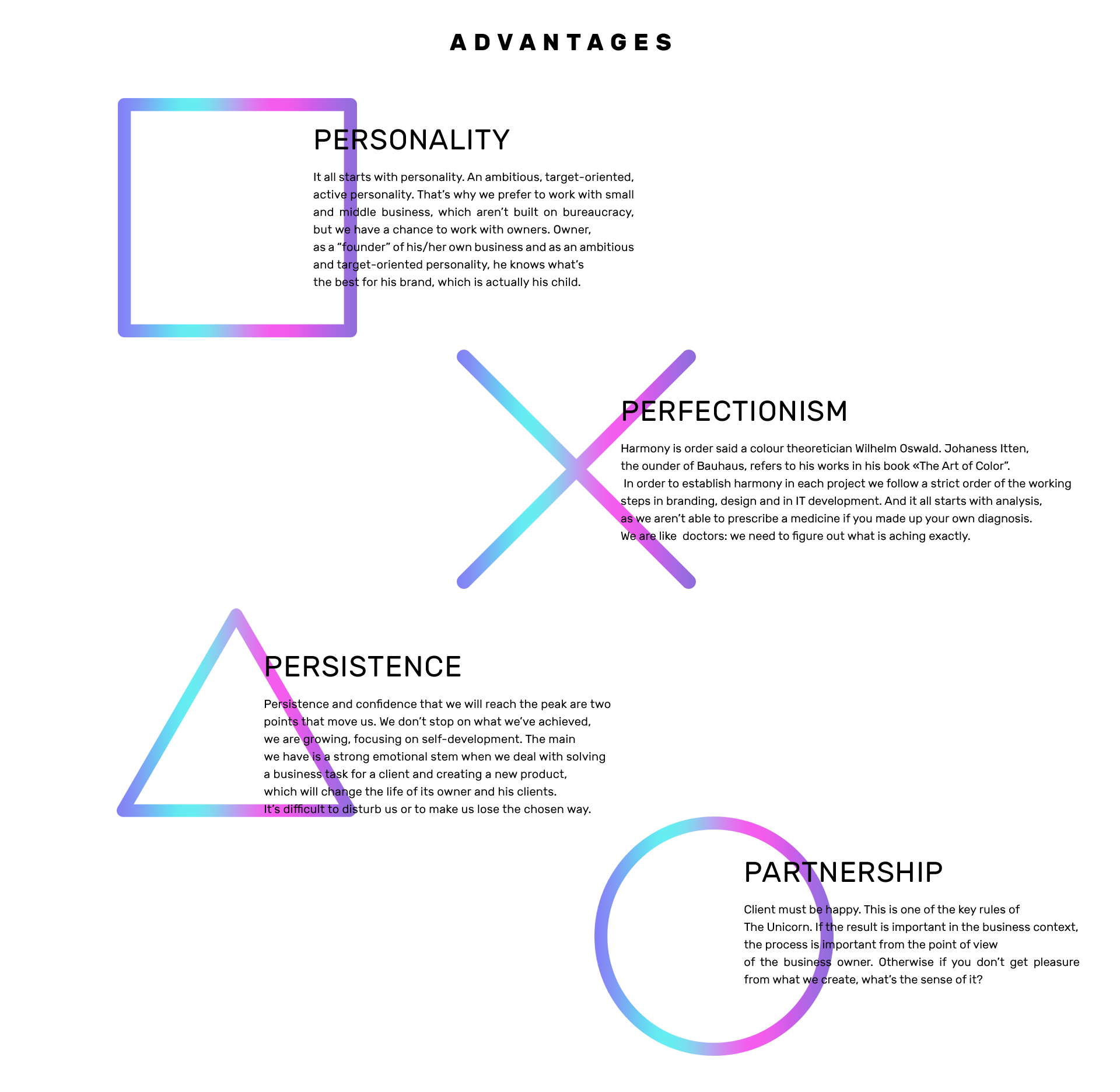 - Отступ от заголовка экрана "ADVANTAGES" нужно увеличить или вообще убрать этот заголовок.