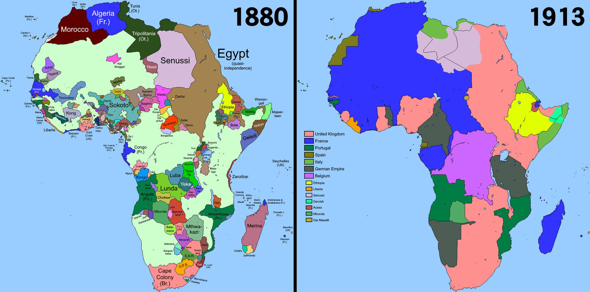 Провозглашённый конференцией принцип эффективной оккупации привёл к тому, что уже через 10 лет, в 1895 году, единственными суверенными государствами в Африке южнее Сахары остались Либерия и Эфиопия.