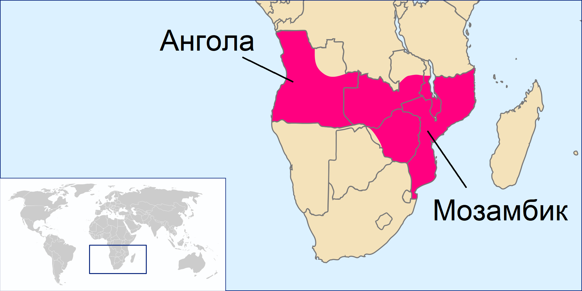 Так интересный план был у Португалии под названием "Розовая карта". Он подразумевал присоединение земель между Анголой и Мозамбиком к Португалии, тем самым создавая единую территорию.