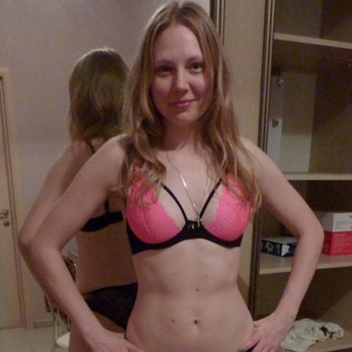 Молодая блондинка раздевается показывая прелестную попку фото
