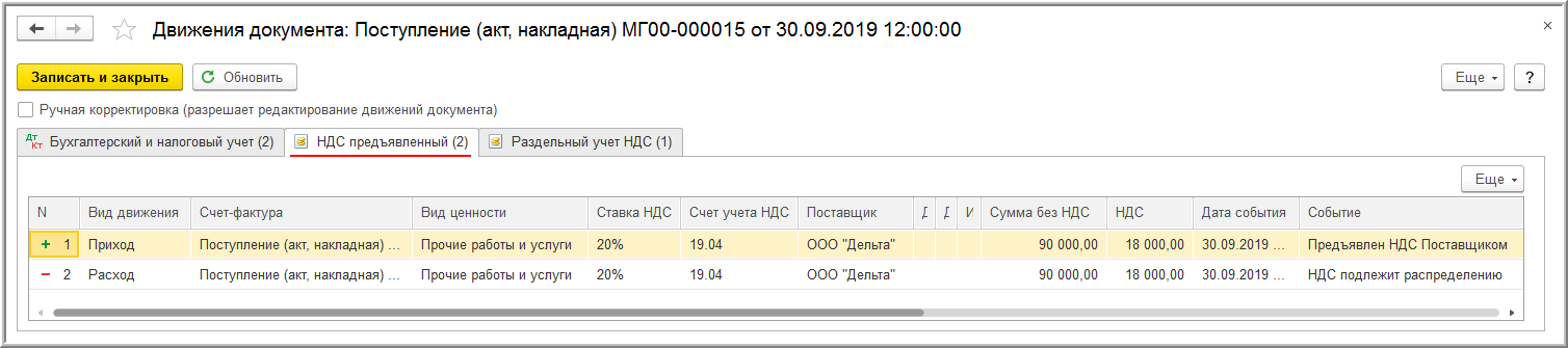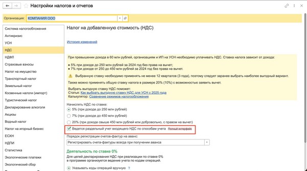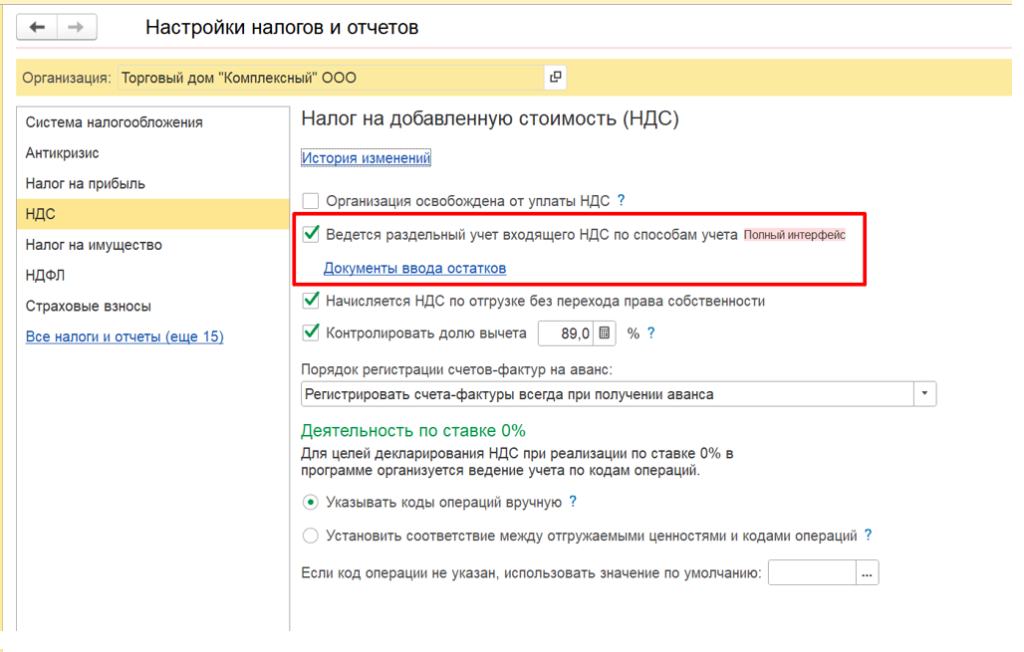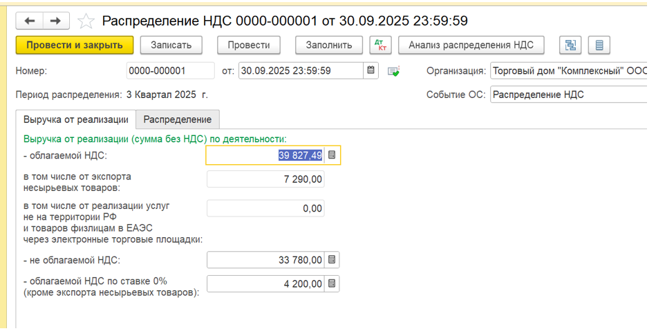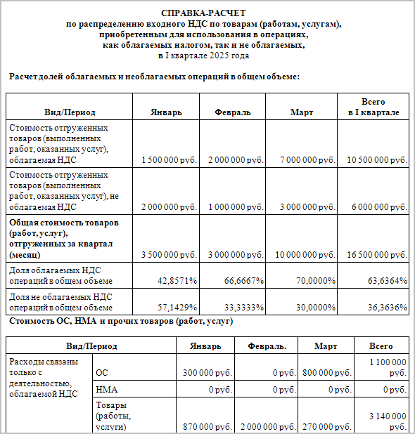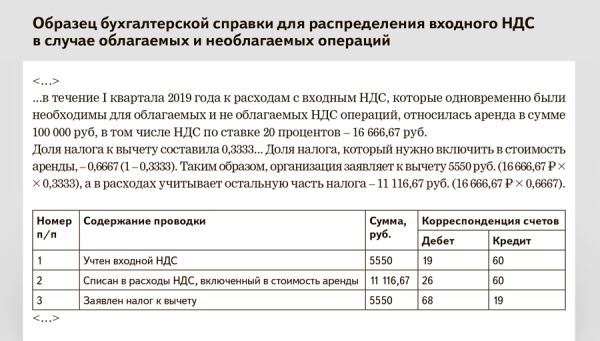 Раздельный ндс пример