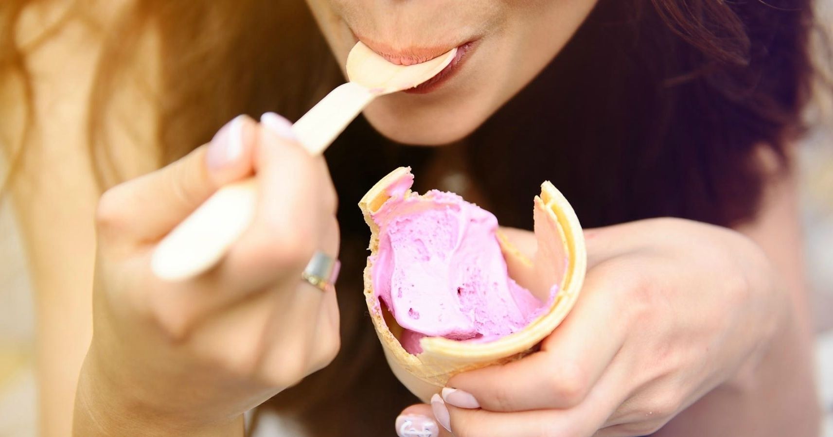 Раздетая девка покупает мороженное