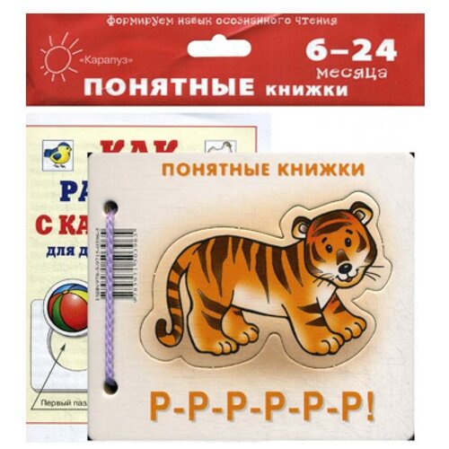 Exotique bien sûr ! Certainement PAS parmi les premiers animaux reconnaissables ! Mais quoi! Il grogne de manière très contagieuse : R-R-R, coloration rayée, caractère colérique ! Mais fort et courageux ! N'ayant peur de personne ! Si un enfant de 6 à 12 mois aime écouter (ou regarder) un livre que vous avez acheté, cela ne veut pas du tout dire qu'il l'aime ou qu'il comprend quelque chose à ce qu'il a lu. Il aime communiquer avec vous, votre voix et votre attention. D'après le texte, il se contentera tout à fait d'un ouvrage de référence sur les mathématiques supérieures (ou d'une chronique des incidents criminels de la semaine), si, bien sûr, vous le déclarez avec expression. L'enfant « lira » lui-même nos livres, car il en comprendra le contenu et se fera un plaisir de répéter les « voix » des animaux. Le livre contient quatre pages recto-verso sur carton, une couverture et un cordon. Cette conception donne de la liberté dans les activités avec votre bébé : vous pouvez relier la couverture et un nombre arbitraire de pages (en commençant par une) avec un cordon.