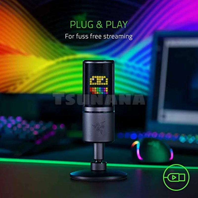 Razer Seiren Emote Streaming Microphone: 8-bit Emoticon LED Display, Stream Reactive Emoticons, Hypercardioid Condenser Mic - Купить с бесплатной доставкой