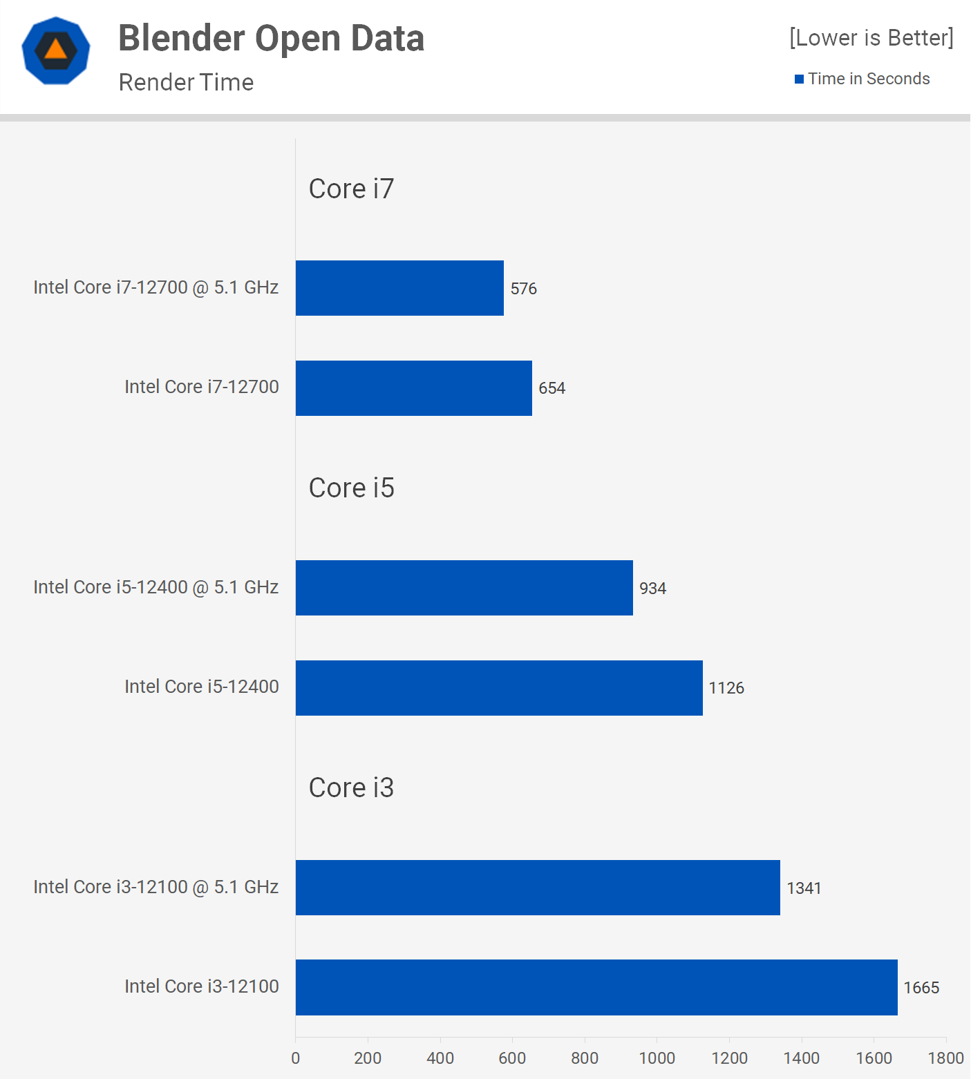 Разгон 12100 уменьшил время рендеринга в Blender на 19%, то есть увеличил скорость на 24%. Рост составил 21% для 12400 и 14% для 12700.