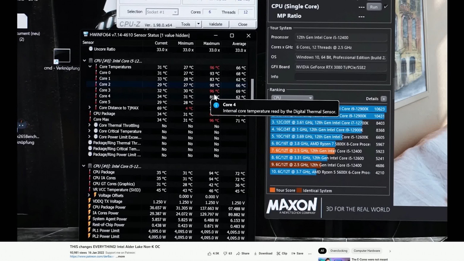 Способ разгона заблокированных процессоров Alder Lake без индекса K был открыто знаменитым оверклокером der8auer. Всего несколько месяцев спустя после выпуска 12-го поколения Intel Core der8auer смог разогнать несколько заблокированных ЦП при помощи BCLK, сделав их частоты намного выше тех, на которых они обычно работают. Например, он разогнал Celeron G6900 со стандартной тактовой частоты 3,4 ГГц до 5,3 ГГц, добившись впечатляющего роста производительности на 56%.