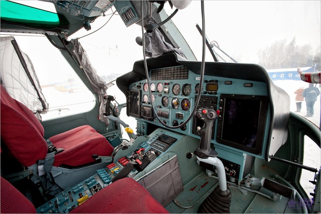 Ну вот смотри. У нас два больших дисплея, на них всё выводится. И указатель курса, и командно-пилотажный комплекс, и погода. Я привык легко и сразу, несмотря на то что большую часть жизни летал на «будильниках» (стрелочные приборы). Ну а что? Например, часики вон на Ка-32 маленькие, не то что на «восьмерке» здоровый циферблат. Есть ещё малые дисплеи. Это навигация. Ну они довольно стандартные, выбираешь маршрут, ППМы (маршрутные точки), он сам делает поправку на ветер, на погоду. Верхняя панель нужна в целом только при запуске. Всё внимание во время полёта сосредоточено на передней панели. Снизу радио, тумблеры запуска двигателя, переключатель смеси, рычаг стопорения винта на стоянке. рычаги выключения подачи топлива. На Ми-8 они сверху над головой.