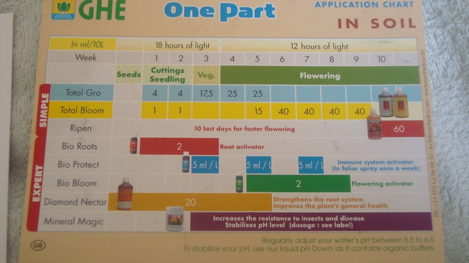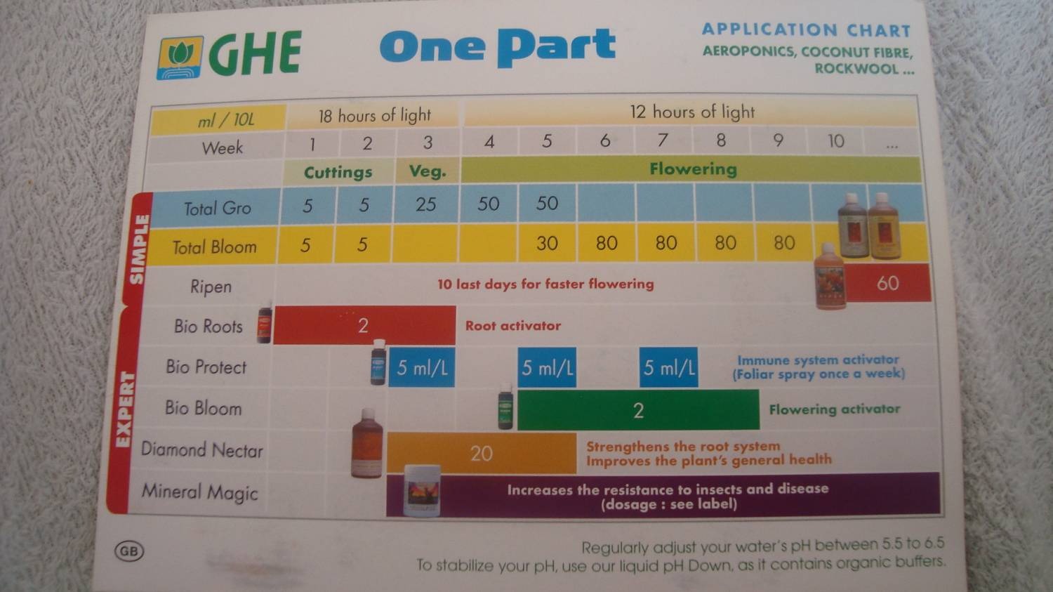 Различные таблицы удобрений GHE