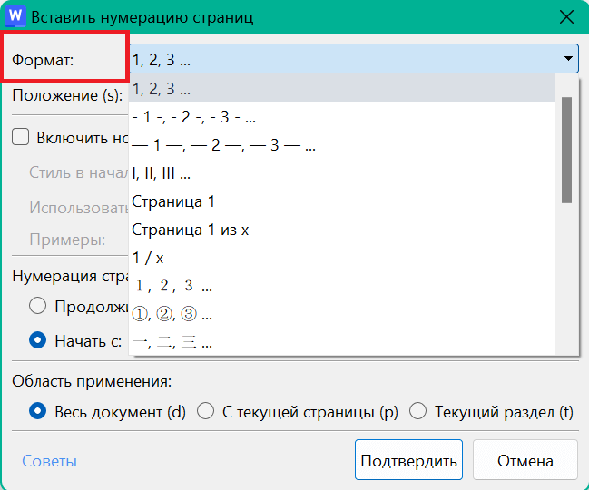 Размер цифр в ворде
