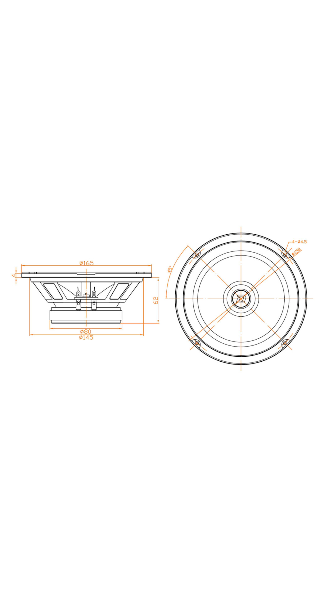 Размер динамиков 165