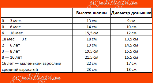 Размер головы по возрасту таблица для шапки