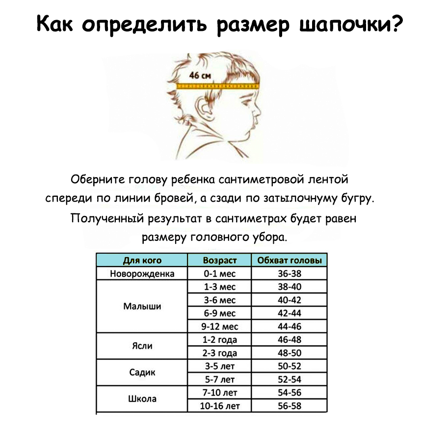 Размер головы по возрасту таблица для шапки 143 фото