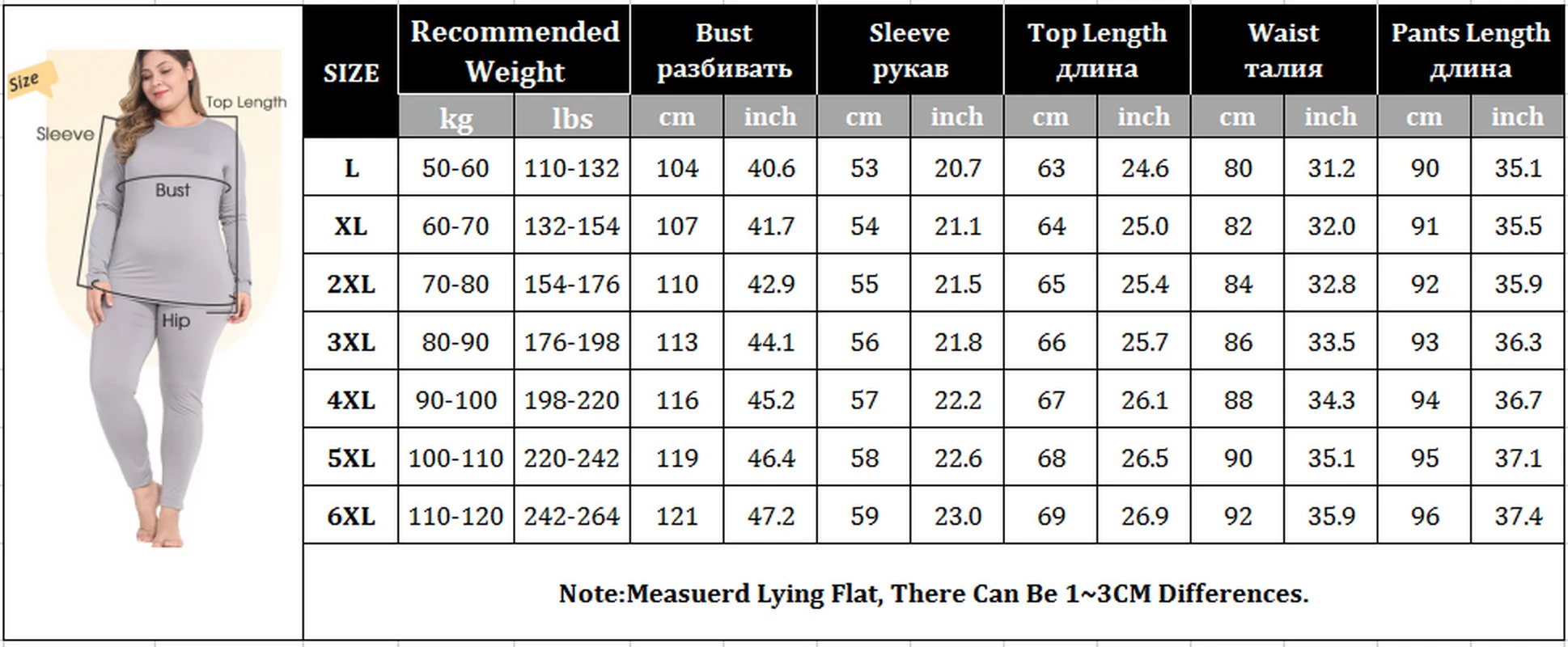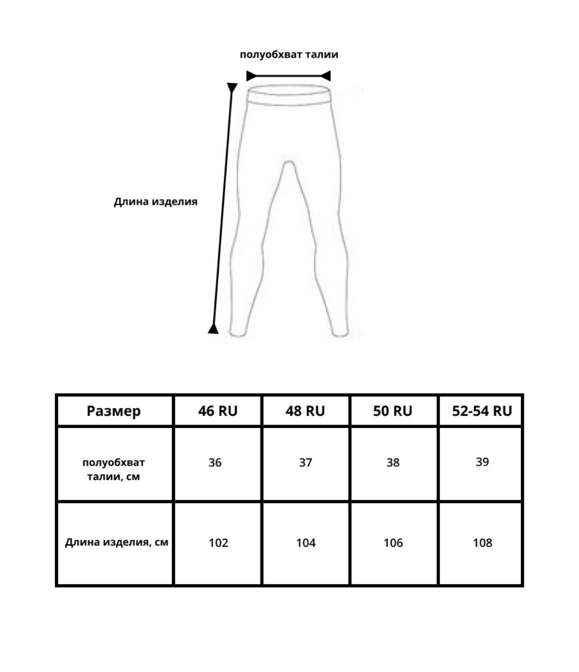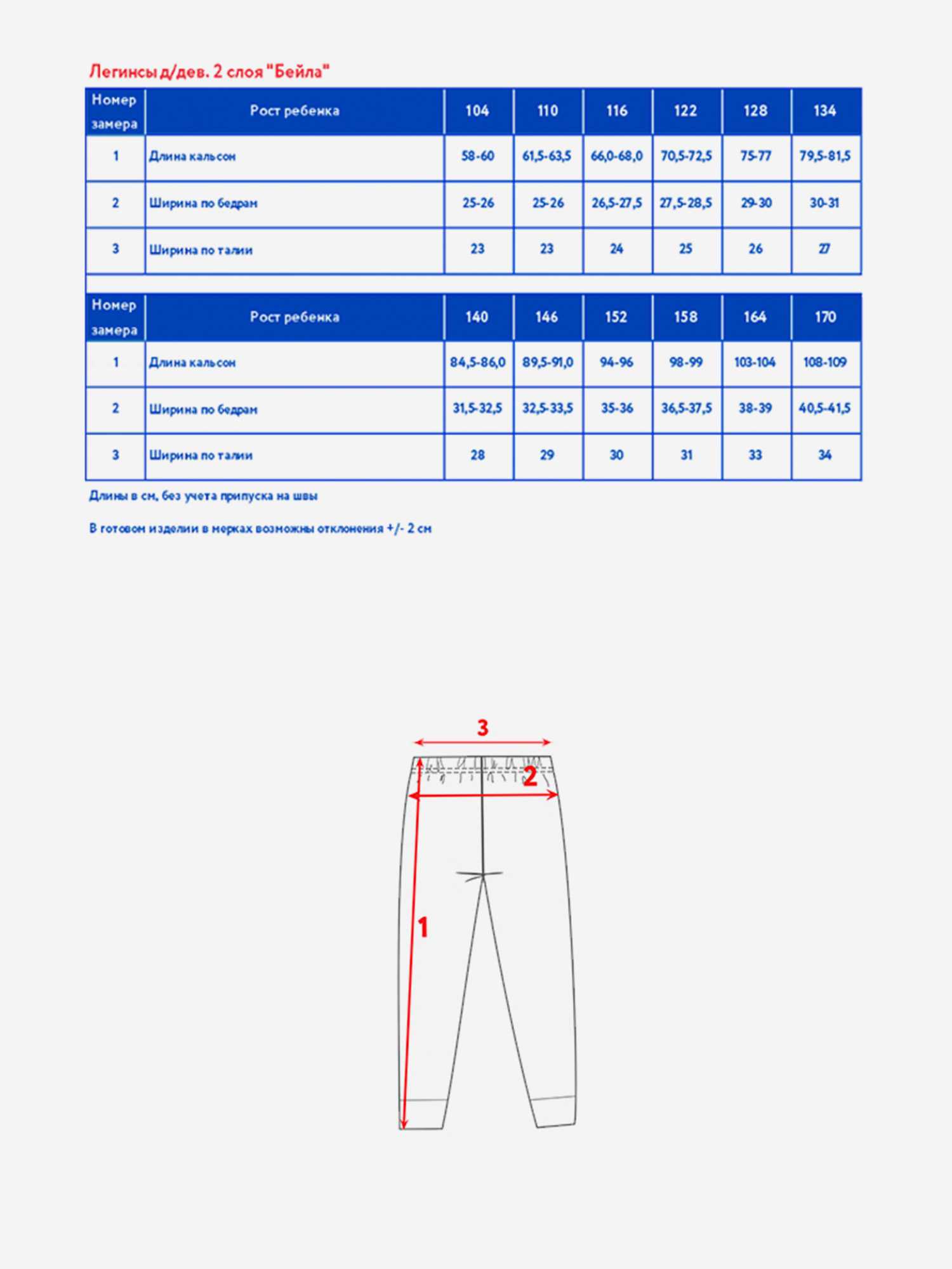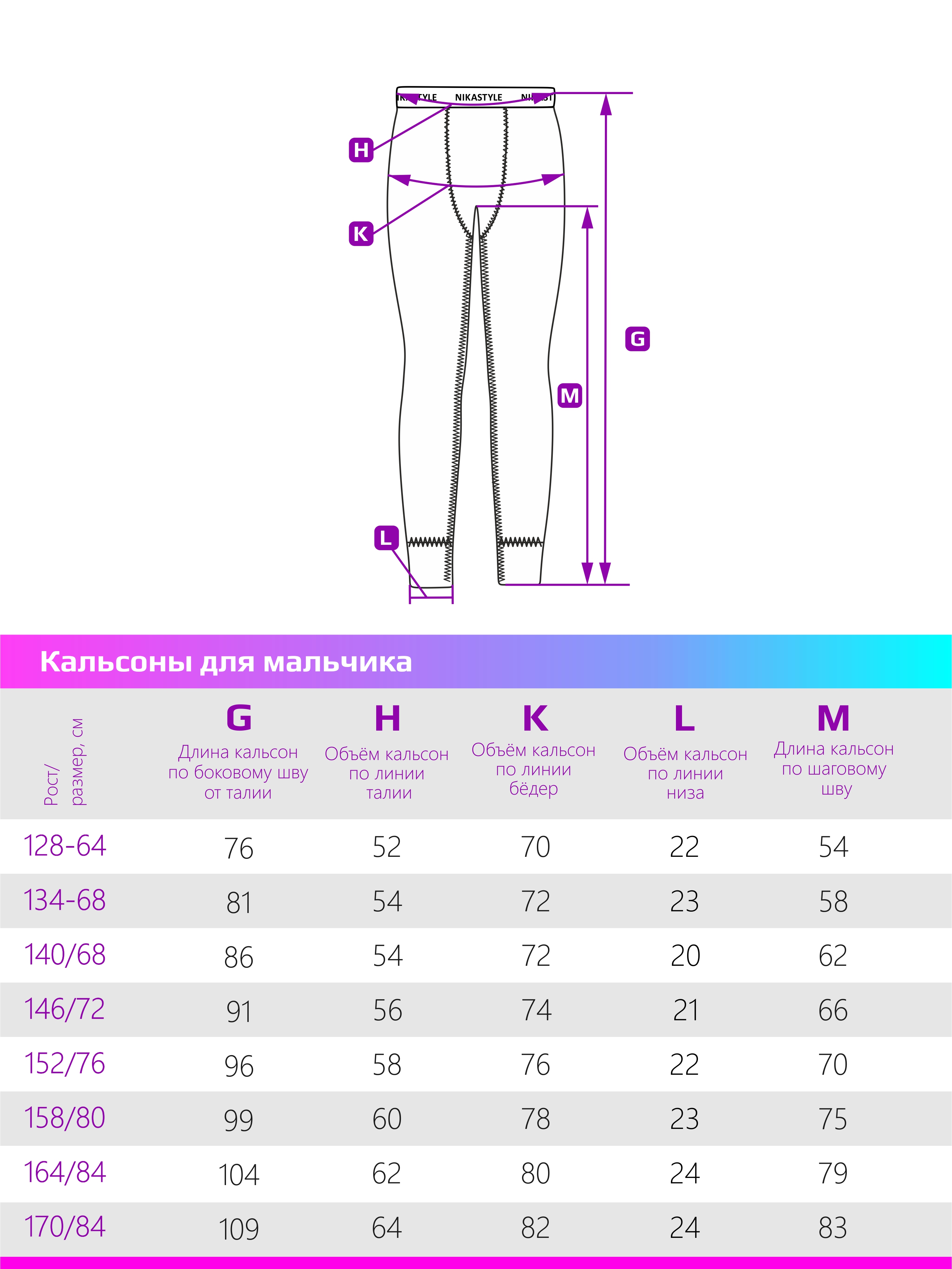 Размер кальсон