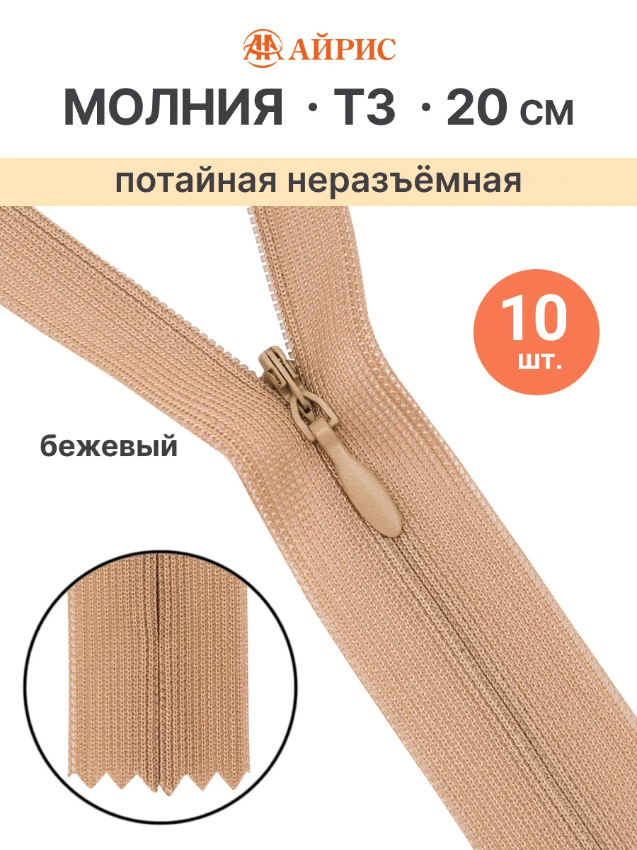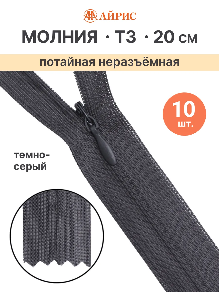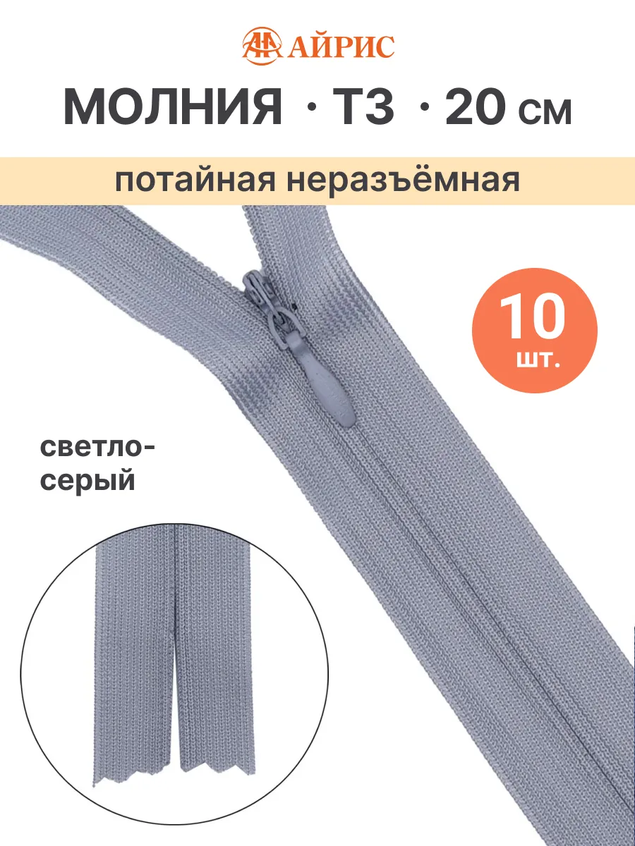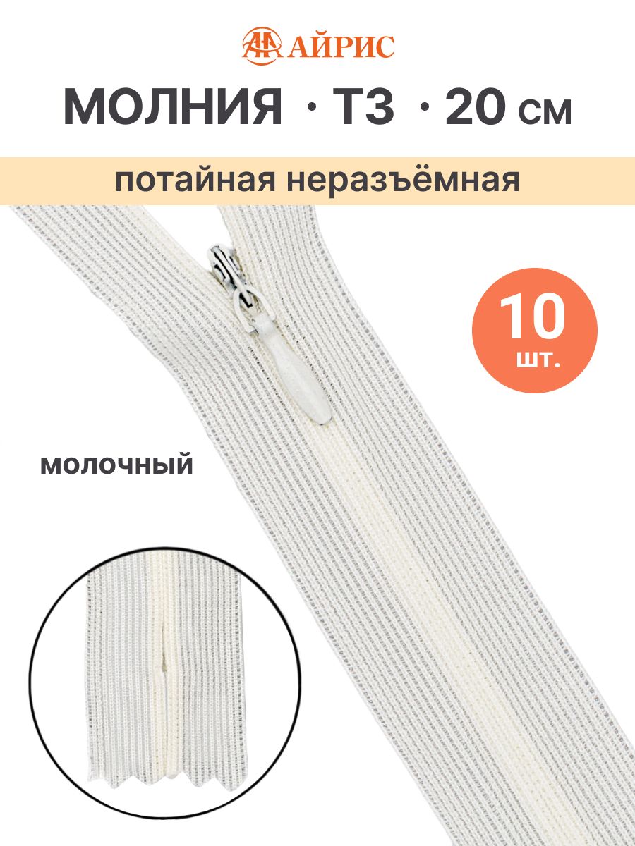 Размер молнии в см
