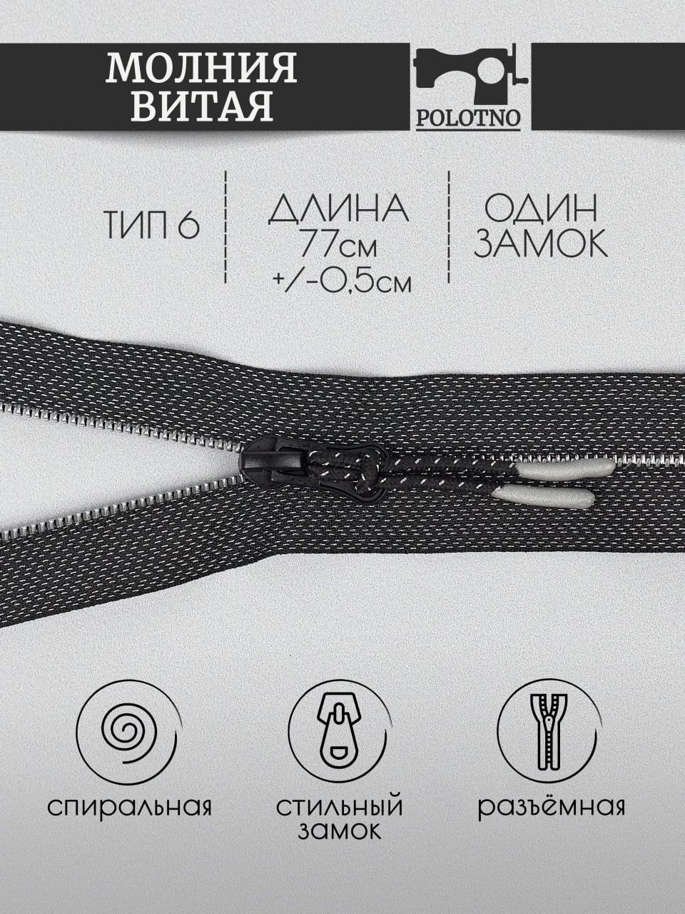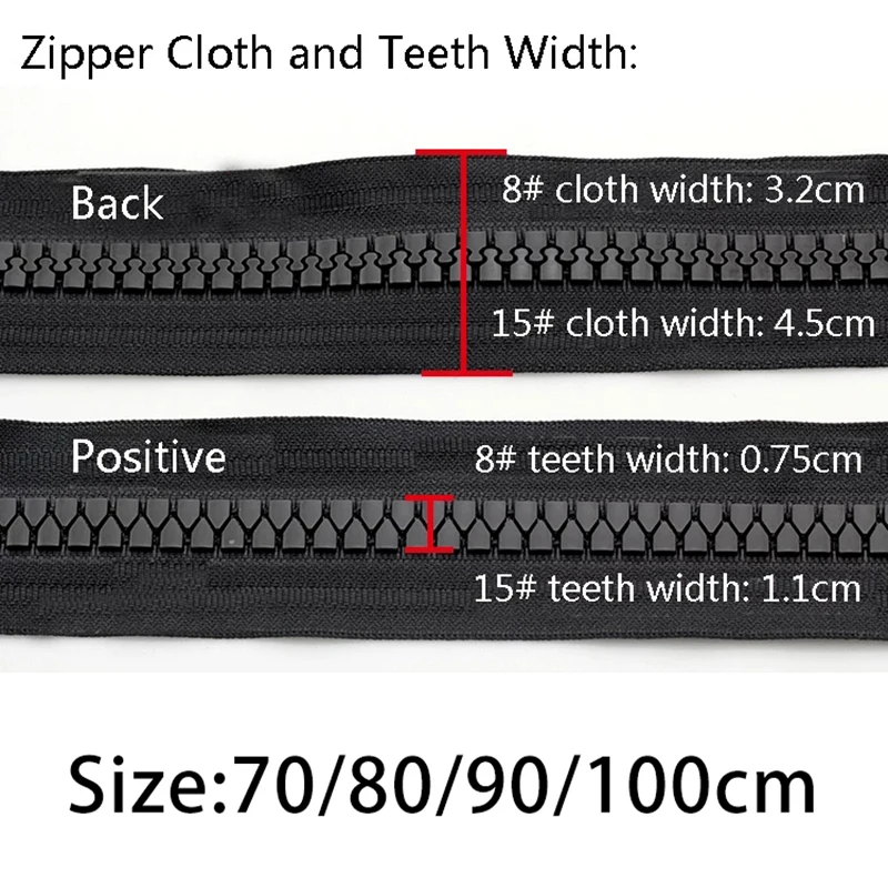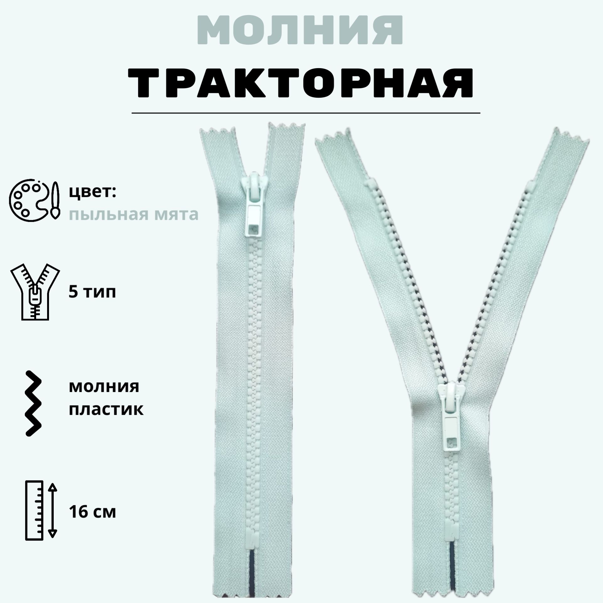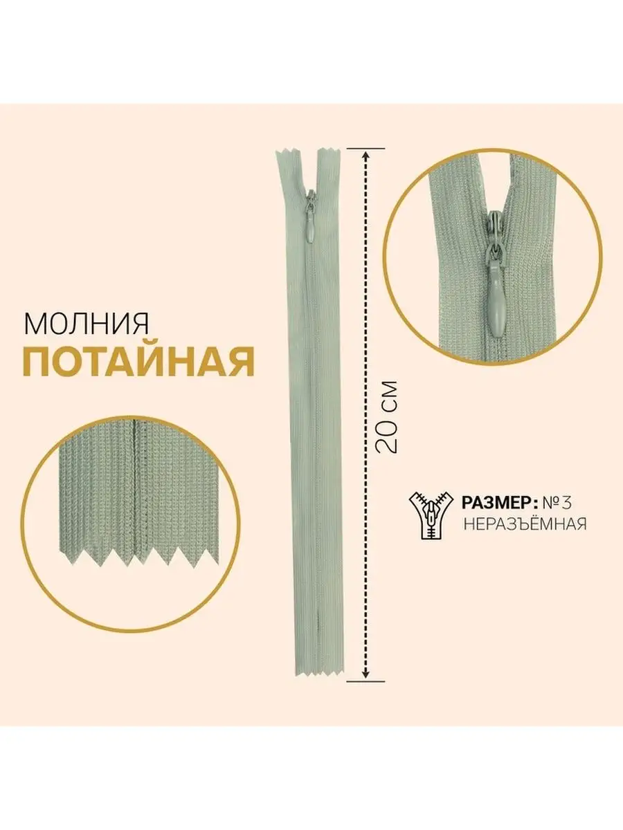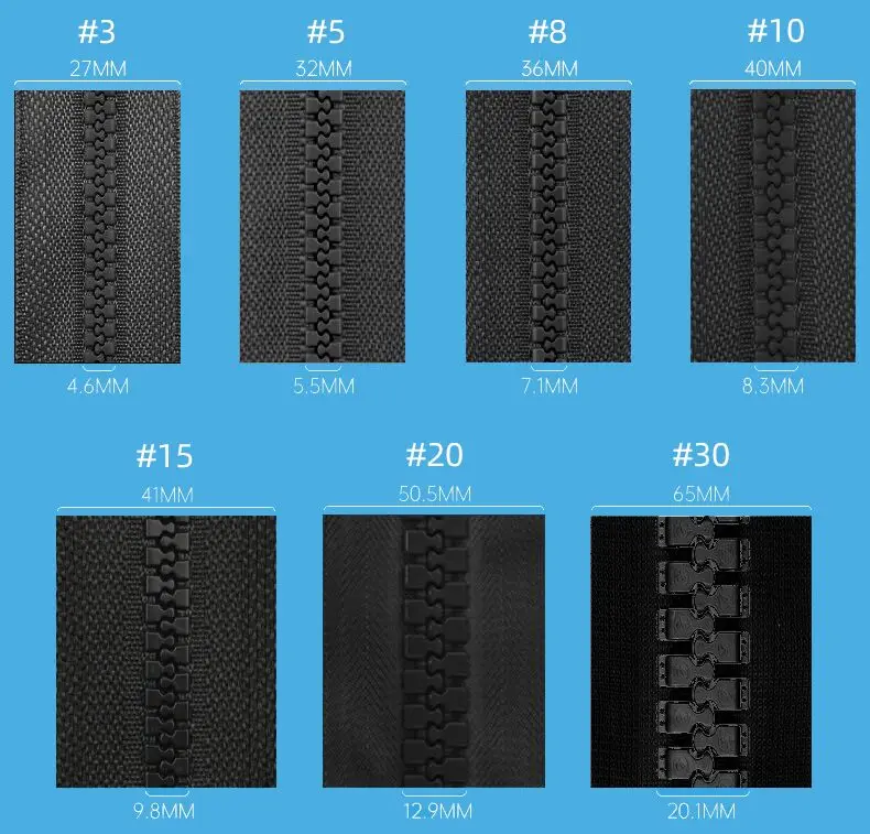 Размер молнии в см