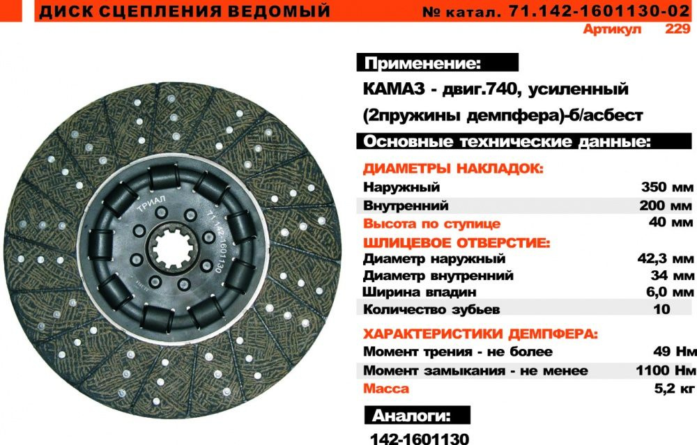 Размер накладок диска сцепления