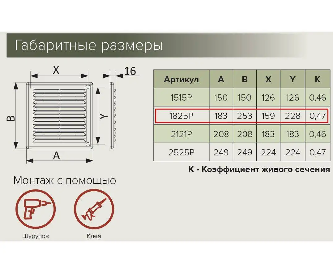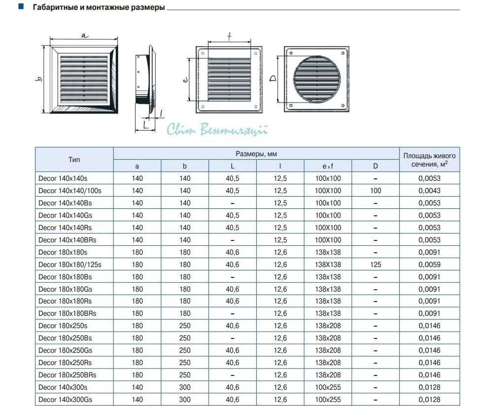 Размер решетки вытяжки