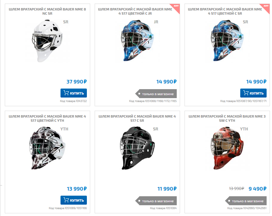 Размер шлемов бауэр
