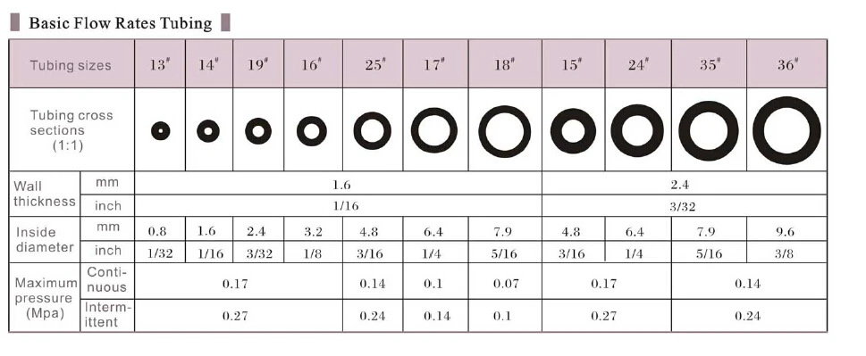 Размер силиконовых трубок