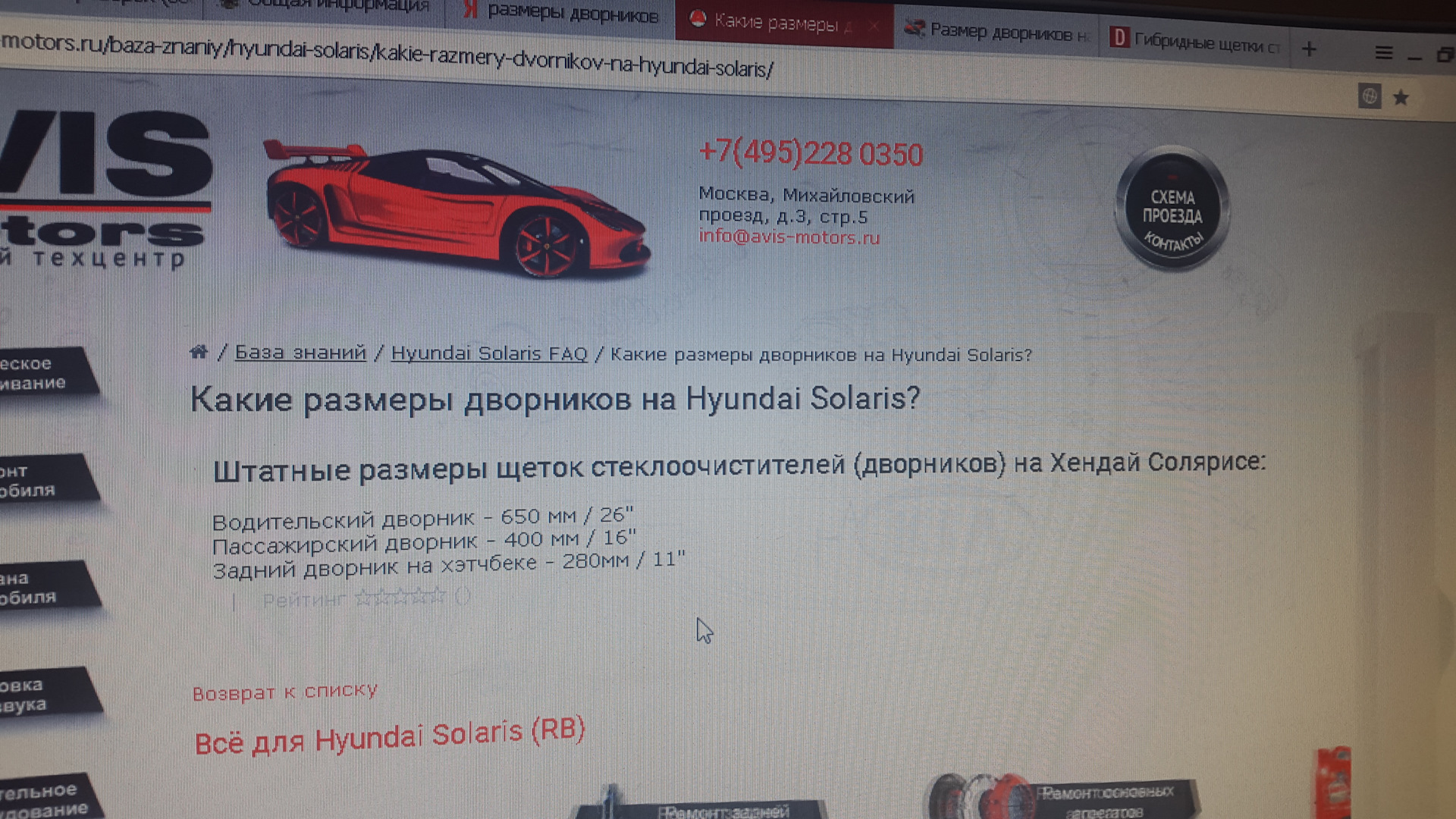 Размер стеклоочистителей солярис 1