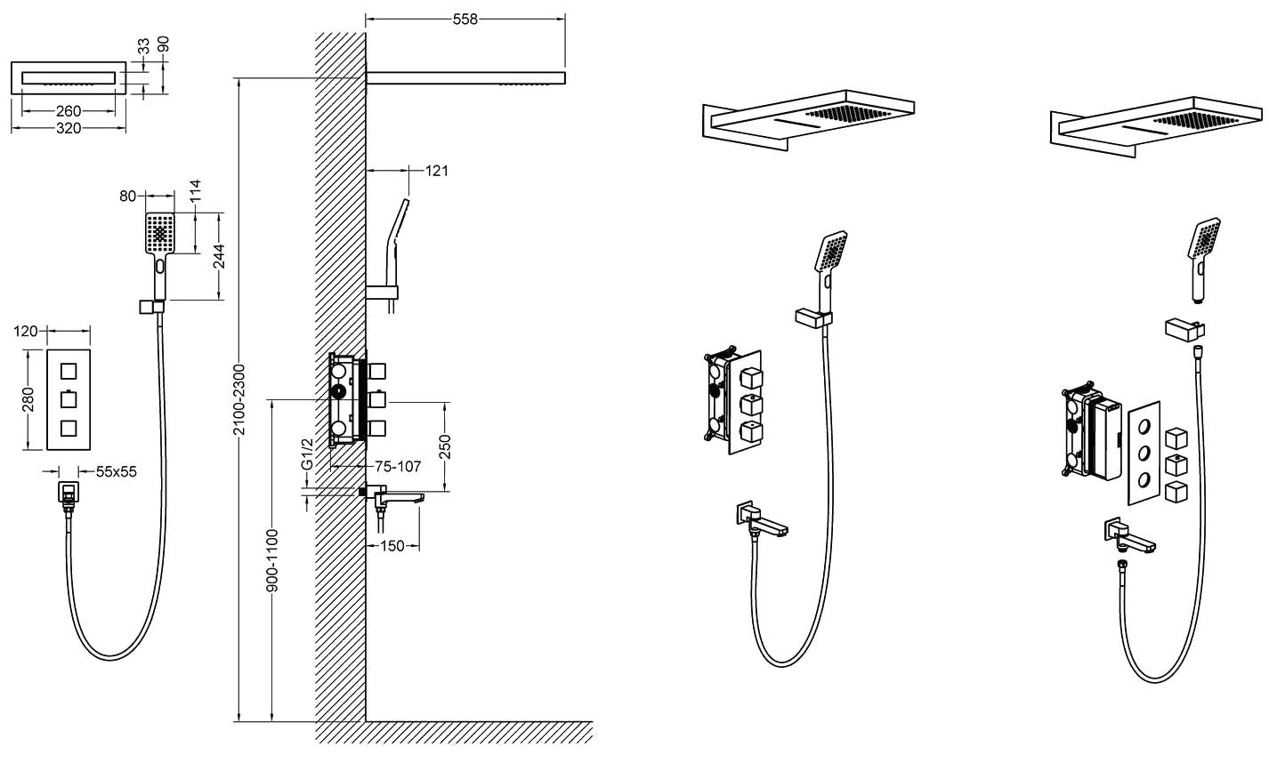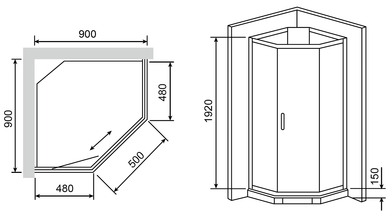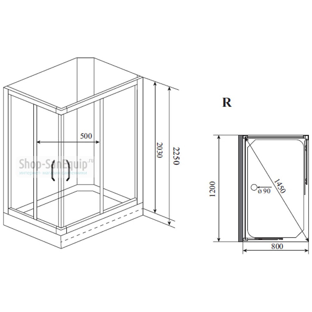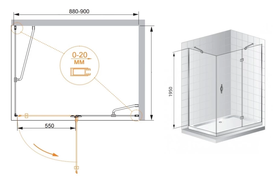 Размер встраиваемой душевой