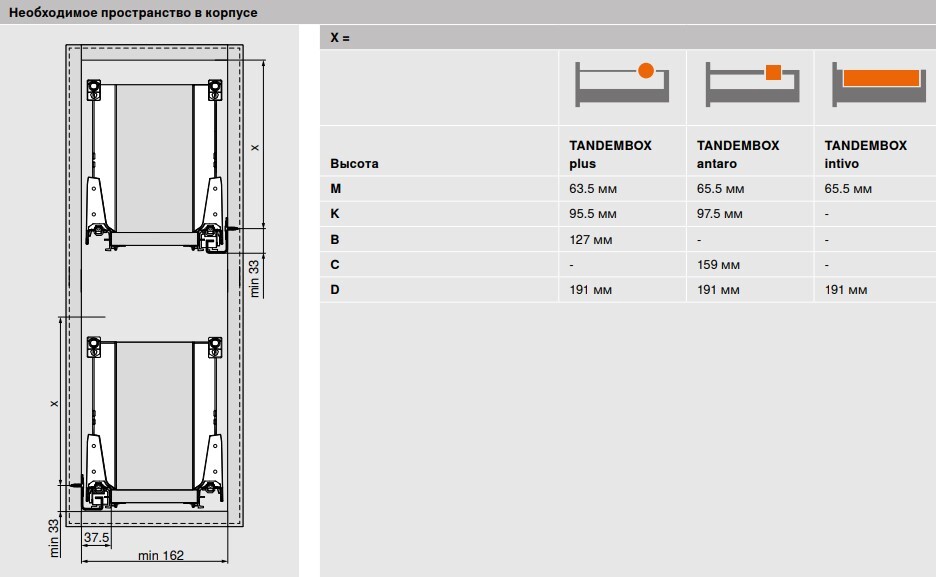 Размер ящиков блюм