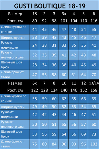 Размерная Сетка Детских Курток