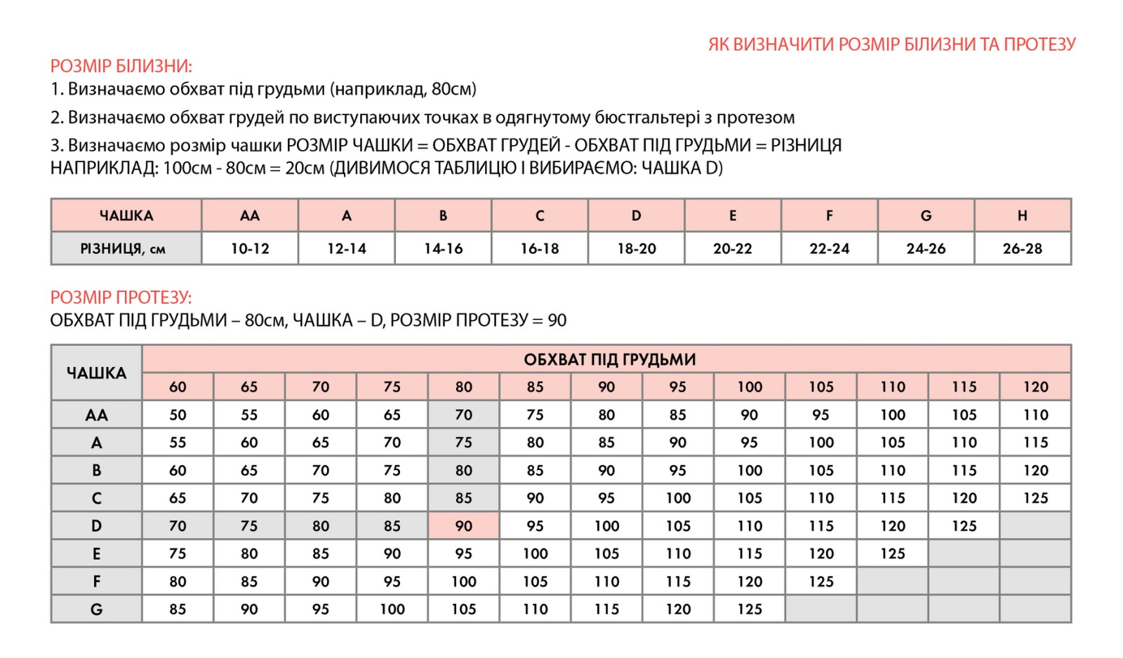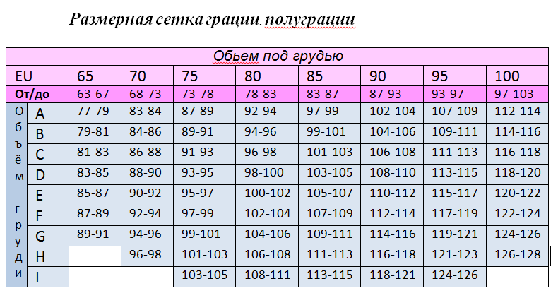 Размерная сетка бюстгальтера таблица