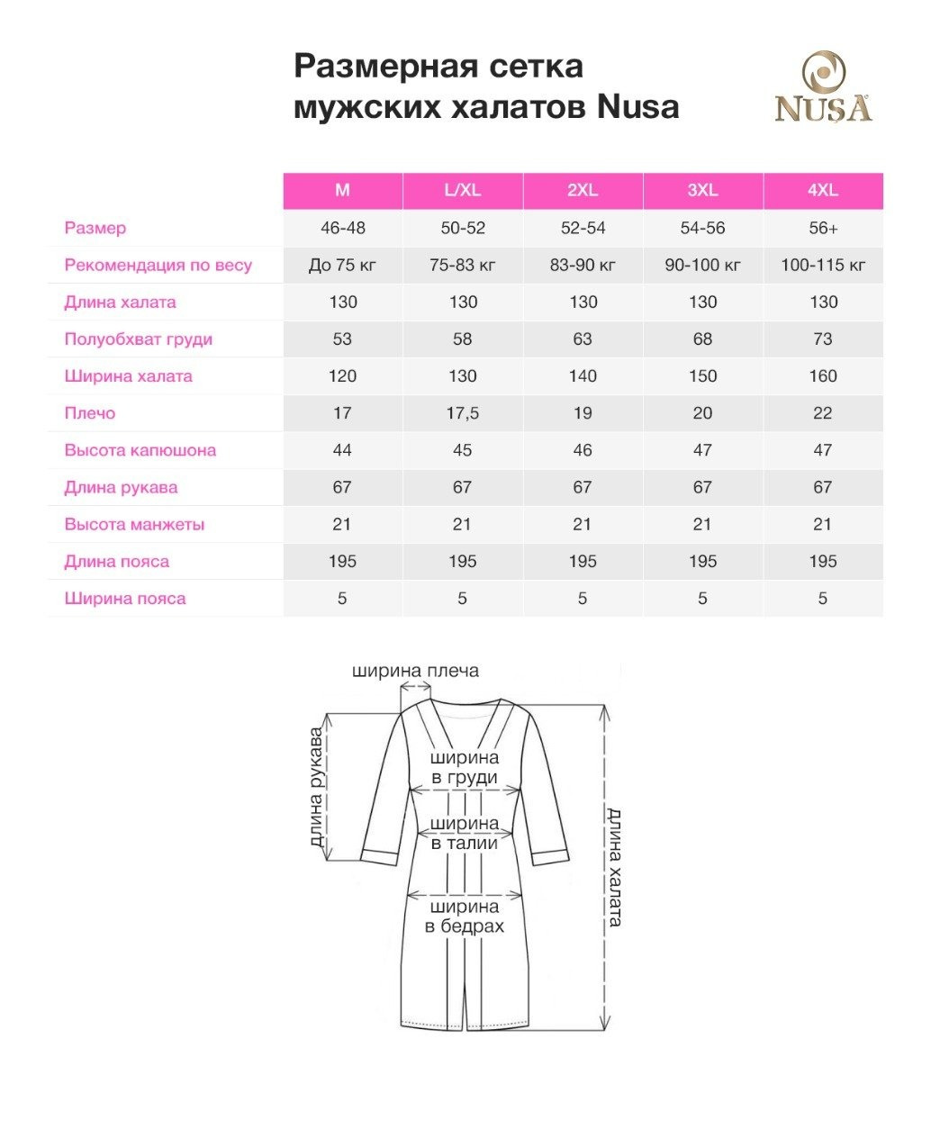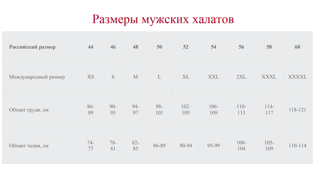 Размерная сетка халат 109 фотографий