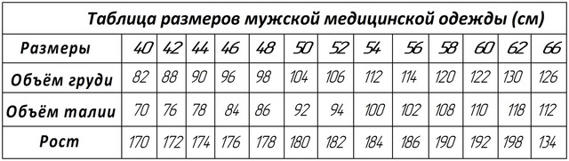 Размерная сетка халат