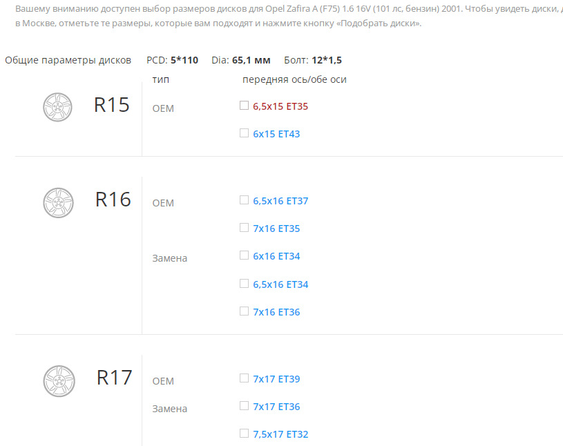 Размеры диска опель зафира б