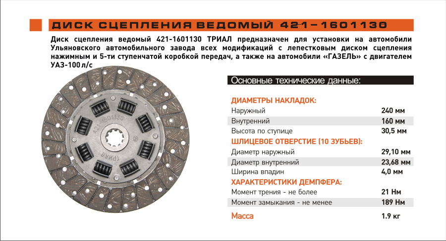 Размеры диска сцепления нивы